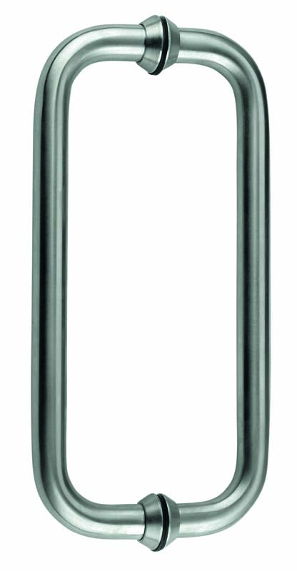 Juego tirador acero inox mate. Tubo de Ø 19 mm. Paso entre ejes: 15, 20 y 25 cm. Taladro al vidrio Ø 12 mm.
